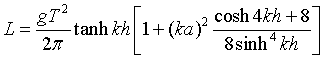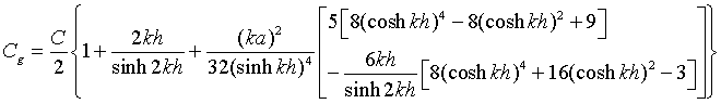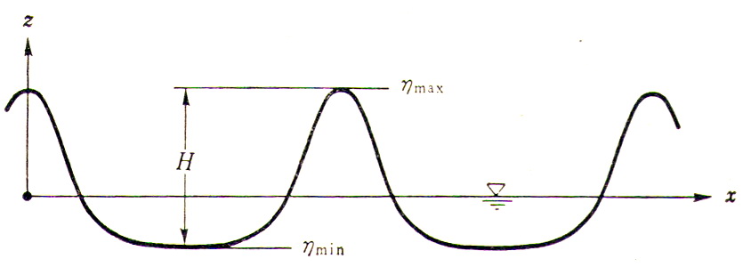 已知週期T、波高H及水深h,依下式計算第3階近似Stokes波的波形、波長、波速、波高及群速度。